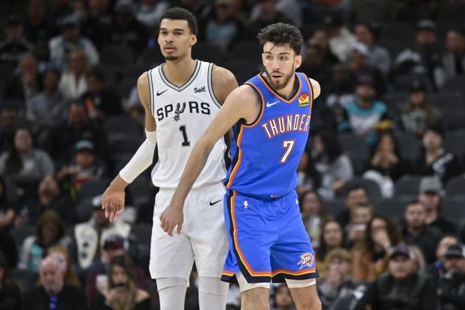 當然別忘了文班亞馬,這位聯盟中最耀眼的新星,已經決定在明天復出,看來他并不想雷霆那么輕易就從他們身上跨過去。在之前他和雷霆的內線已經有過對位,結果雷霆內線核心切特,在他面前就像個小孩子一樣。